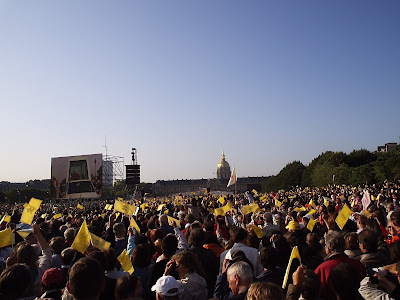 Pois bem, sabado foi dia de acordar cedinho para assistir a missa do Papa Bento XVI (que aqui na França é chamado de Benoît XVI) na esplanada de Invalides. Mesmo estando ainda sonolento, não foi dificil de perceber que a organização do evento era algo como eu jamais havia visto.