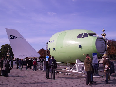 Algumas peças vieram de Toulouse, sendo reunidas no porto de Pauillac sobre o Garonne, e seguiram pela água até o Havre. Uma embarcação - a que transportou os foguetes Ariane - subiu então o Sena até a ponte de Puteaux, onde esperou um comboio rodoviário excepcional. O Mirage III e o Rafale chegaram domingo à noite passando pelo subúrbio, após um minucioso preparo na fábrica da Dassault de Argenteuil. A noite mais delicada foi a da última segunda-feira: quando uma grua de 130 toneladas foi conduzida pela DHL para desembarcar os helicópteros Cornu (de 101 anos) e o CE130 da Eurocopter.