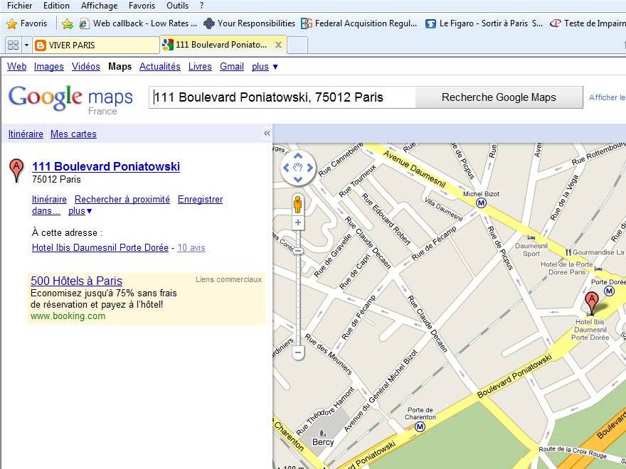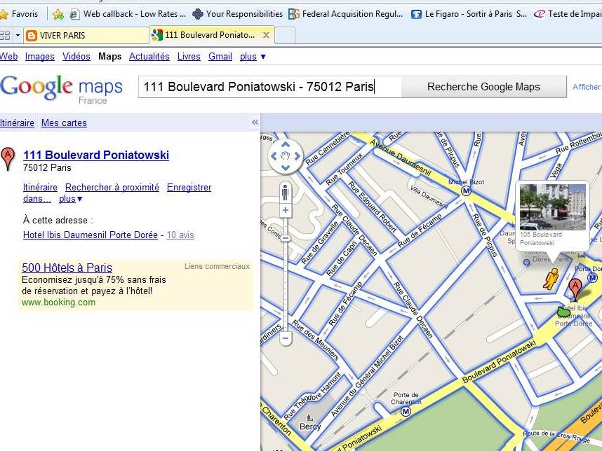 Com exemplo fica mais fácil? Então vamos imaginar que você está pensando em se hospedar no Hotel Ibis de Porte Dorée (111 Boulevard Poniatowski - 75012 Paris) e quer dar uma espiada na localização do hotel.